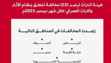 هيئة التراث تعلن عن مخالفات شهر ديسمبر لنظام الآثار والتراث العمراني