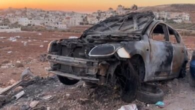 مستوطنون إسرائيليون يحرقون مركبات فلسطينية في رام الله
