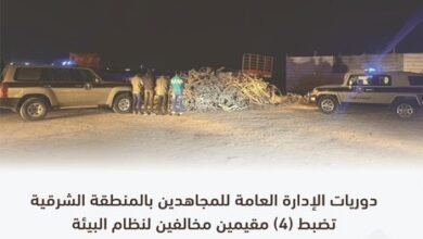 دوريات المجاهدين بالمنطقة الشرقية تضبط (4) مقيمين مخالفين لنظام البيئة