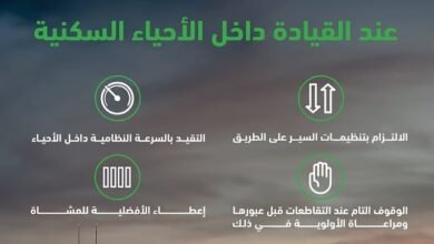 المرور السعودي يدعو لتجنب السرعة والالتزام بالأنظمة داخل الأحياء السكنية