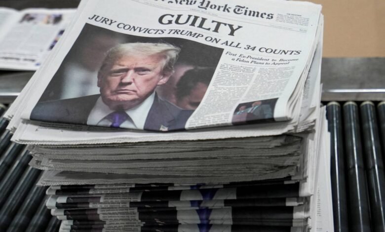 والأسبوع الماضي، توصل المحلفون إلى أن ترمب مذنب بقضية تزوير سجلات تجارية، للتغطية على فضيحة جنسية في المراحل الأخيرة من حملته الرئاسية عام 2016. وسيصدر الحكم بحقه في 11 يوليو (تموز).