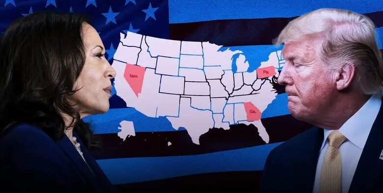 ويتوقع أن تشهد ثلاث ولايات هي نيفادا وجورجيا وبنسلفانيا المنافسة الأشد بين المرشحَين. ويبدو أن بنسلفانيا قد تحسم النتيجة بمنحها أحد الطرفين الفوز في الانتخابات.