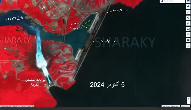 أحدث صورة لسد النهضة .. توقف التوربينات ومخزون المياه 60 ملياراً