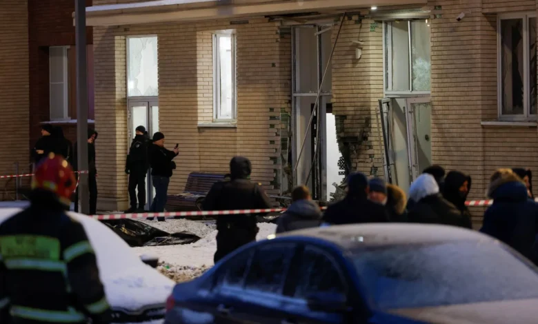 وأظهرت صور نشرتها قنوات روسية على تلغرام مدخلاً محطماً لمبنى ومليئاً بالركام وجثتين وسط ثلوج مختلطة بالدماء.