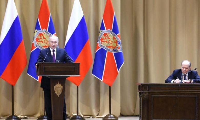 وفي كلمة أمام المسؤولين، قال بوتين إن على الجهاز وقف «جماعات التخريب» التي تدخل روسيا قادمة من أوكرانيا، وتكثيف جهود حماية البنية التحتية، ومنع أجهزة الأمن الغربية من إعادة تنشيط ما أطلق عليه خلايا إرهابية أو متطرفة داخل روسيا. وأضاف: «لطالما اعتادت أجهزة الاستخبارات الغربية أن تكون نشطة دوما في روسيا، والآن ألقوا علينا أفراداً إضافيين وموارد تقنية وموارد أخرى إضافية. يتعين علينا القيام برد فعل إزاء ذلك».