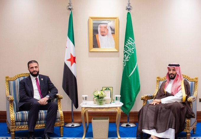 التقى صاحب السمو الملكي الأمير محمد بن سلمان بن عبدالعزيز آل سعود ولي العهد رئيس مجلس الوزراء، في العاصمة القطرية الدوحة اليوم على هامش أعمال القمة العربية الإسلامية الطارئة، فخامة الرئيس أحمد الشرع رئيس الجمهورية العربية السورية.
