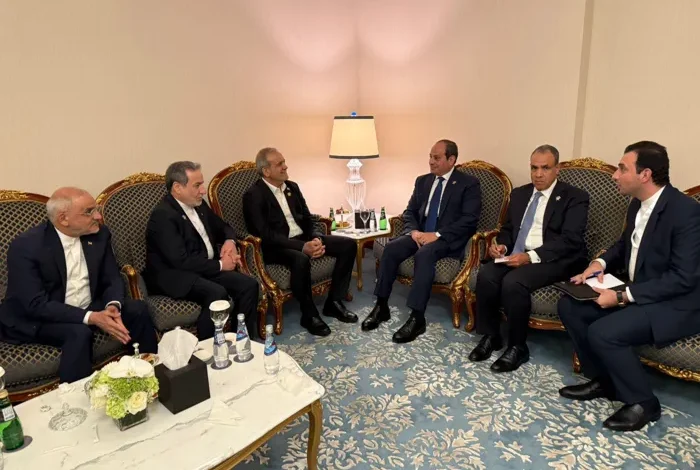 وصرح المتحدث الرسمي باسم الرئاسة المصرية، السفير محمد الشناوي، بأن الرئيس الإيراني استهلّ المقابلة بمعاودة توجيه الشكر والإعراب عن التقدير للرئيس السيسي على الدور المصري في تيسير المفاوضات بين إيران والوكالة الدولية للطاقة الذرية، وما ترتب على ذلك من التوصل إلى اتفاق استئناف التعاون بين إيران والوكالة، الذي تم توقيعه في القاهرة يوم 9 سبتمبر 2025.