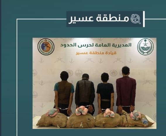 كما قبضت الدوريات البرية لحرس الحدود في قطاع الدائر بمنطقة جازان على (4) مخالفين لنظام أمن الحدود من الجنسية الإثيوبية، لتهريبهم (140) كيلوجرامًا من نبات القات المخدر، واستكملت الإجراءات النظامية الأولية بحقهم، وسُلّموا والمضبوطات لجهة الاختصاص.