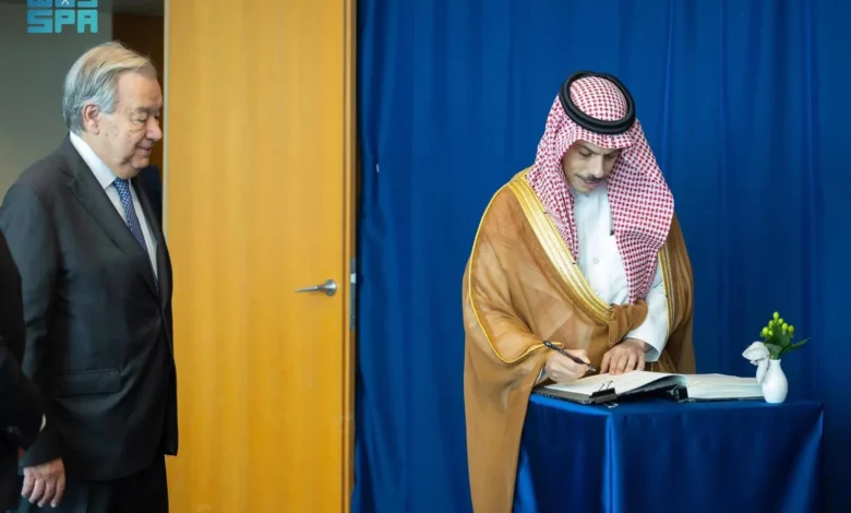 التقى صاحب السمو الأمير فيصل بن فرحان بن عبدالله وزير الخارجية اليوم، معالي الأمين العام لمنظمة الأمم المتحدة السيد أنطونيو غوتيريش، وذلك على هامش أعمال الجمعية العامة للأمم المتحدة في دورتها الثمانين، بمدينة نيويورك في الولايات المتحدة الأمريكية.