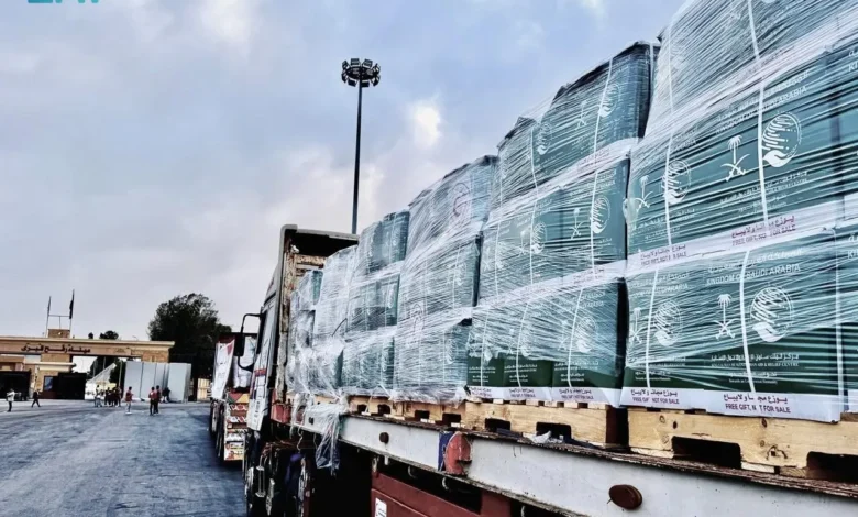 مساعدات إغاثية سعودية جديدة تعبر منفذ رفح متجهة إلى قطاع غزة مقدمة من مركز الملك سلمان للإغاثة