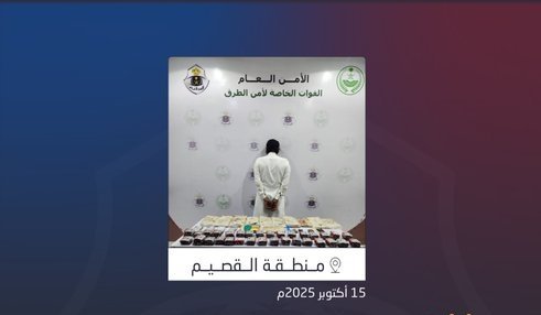 القوة الخاصة لأمن الطرق بمنطقة القصيم تقبض على شخص لترويجه مواد مخدرة