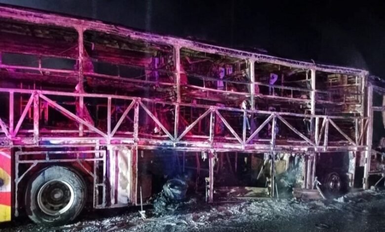 وأفادت السلطات المحلية أن الحادث وقع عندما اصطدمت دراجة نارية بخزان وقود الحافلة، ما أدى إلى انفجار هائل وانتشار سريع للنيران في كامل المركبة.