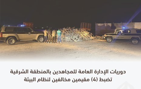 دوريات المجاهدين بالمنطقة الشرقية تضبط (4) مقيمين مخالفين لنظام البيئة