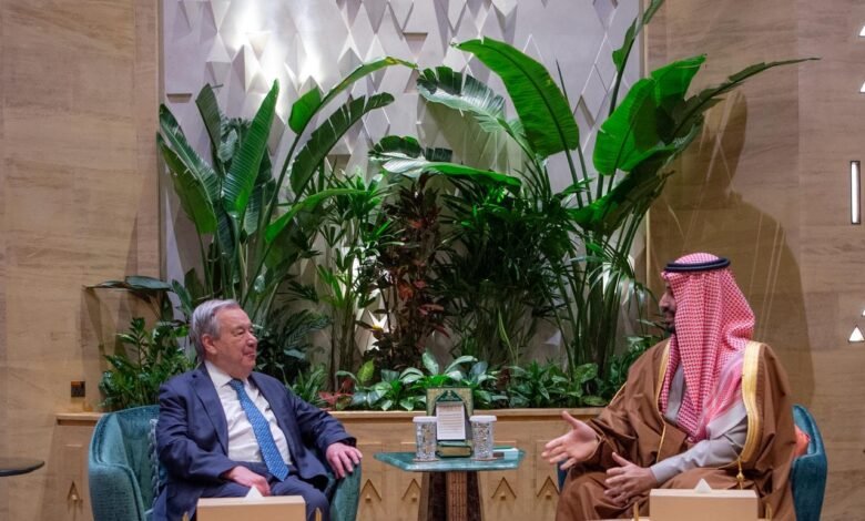 سمو ولي العهد والأمين العام للأمم المتحدة يستعرضان مستجدات الأوضاع الإقليمية والدولية