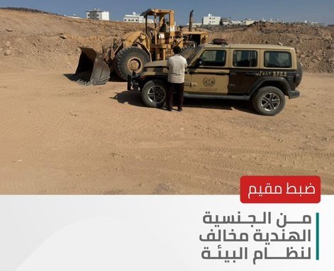 ضبطت القوات الخاصة للأمن البيئي مقيمًا مخالفًا لنظام البيئة من الجنسية الهندية، لاستغلاله الرواسب في منطقة المدينة المنورة، وطُبقت الإجراءات النظامية بحقه.