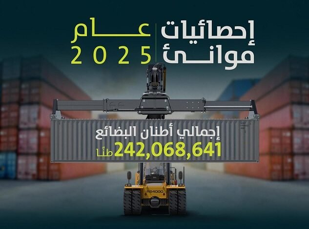 حققت الموانئ التي تشرف عليها الهيئة العامة للموانئ “موانئ” خلال 2025م ارتفاعًا في أعداد الحاويات المناولة بنسبة 10.58% لتصل إلى 8,317,235 حاوية قياسية، مقارنة بـ 7,521,306 حاويات قياسية العام الماضي 2024م، وحققت حاويات المسافنة ارتفاعًا بنسبة 11.78%، لتصل إلى 1,927,348 حاوية قياسية، مقارنة بـ 1,724,184 حاوية قياسية بالفترة المماثلة من العام الماضي.