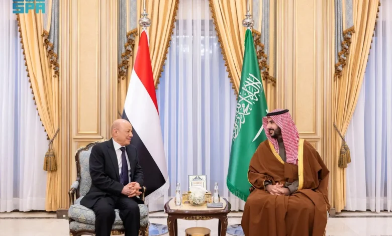 سمو وزير الدفاع يلتقي رئيس مجلس القيادة الرئاسي اليمني وأعضاء المجلس ورئيس مجلس الوزراء ووزير الدولة محافظ محافظة عدن