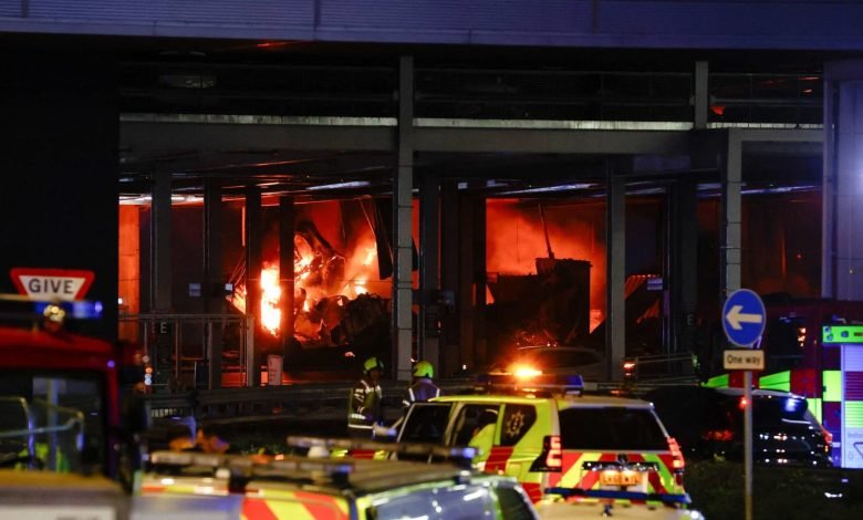 وتم فرض قيود على الوصول إلى المطار بسبب الحريق في المبنى رقم 2 للإقامة القصيرة، بحسب ما نقلته وسائل إعلام بريطانية.