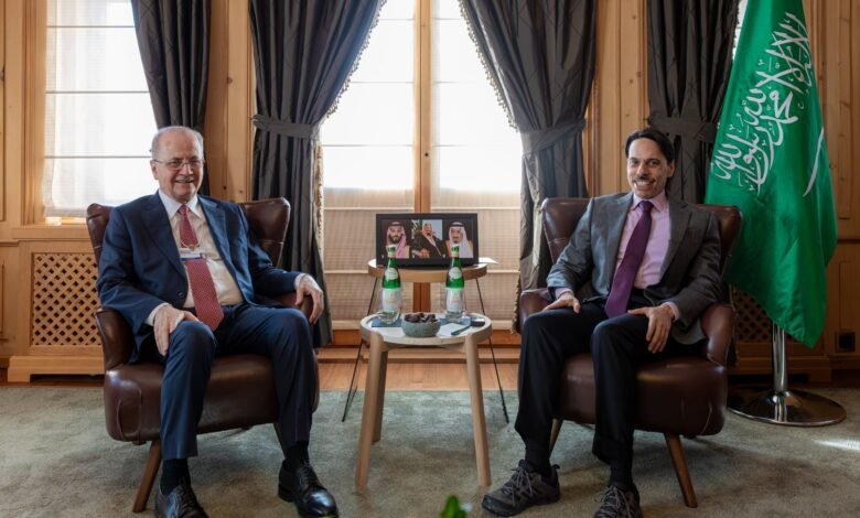 التقى صاحب السمو الأمير فيصل بن فرحان بن عبدالله وزير الخارجية، اليوم، دولة رئيس مجلس وزراء فلسطين الدكتور محمد مصطفى، وذلك على هامش الاجتماع السنوي للمنتدى الاقتصادي العالمي 2026، في مدينة دافوس السويسرية.