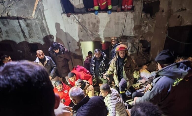 وقد نجحت فرق الدفاع المدني في إنقاذ طفلة نقلت إلى المستشفى بحالة مستقرة، وتستمر عمليات البحث باستخدام أجهزة متخصصة لتحديد مواقع العالقين.