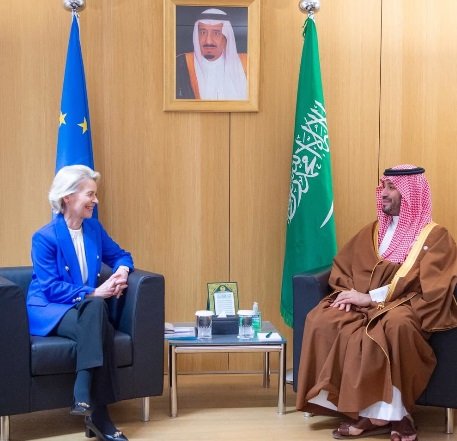 سمو ولي العهد ورئيسة المفوضية الأوروبية يبحثان التطورات بالمنطقة وتداعيات التصعيد