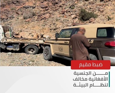 ضبطت القوات الخاصة للأمن البيئي مقيمًا مخالفًا لنظام البيئة من الجنسية الأفغانية، لاستغلاله الرواسب في منطقة المدينة المنورة، وتم تطبيق الإجراءات النظامية بحقه.