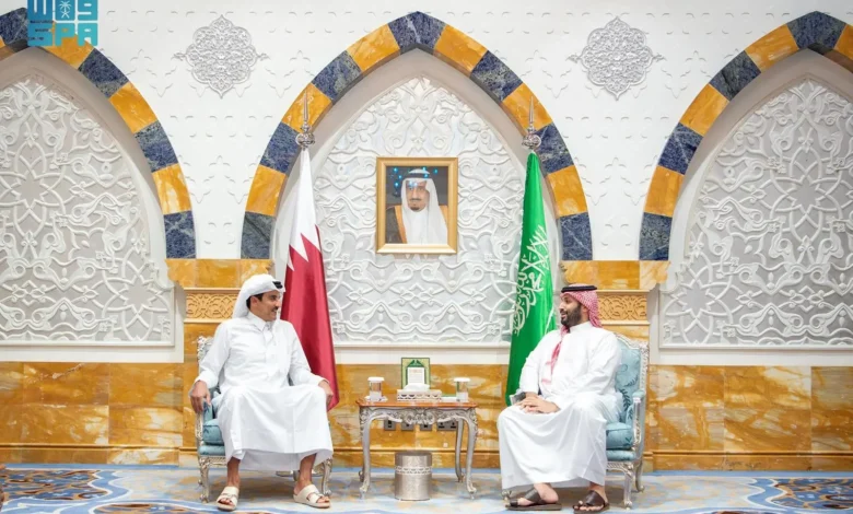 سمو ولي العهد وأمير قطر يستعرضان العلاقات الثنائية بين البلدين الشقيقين