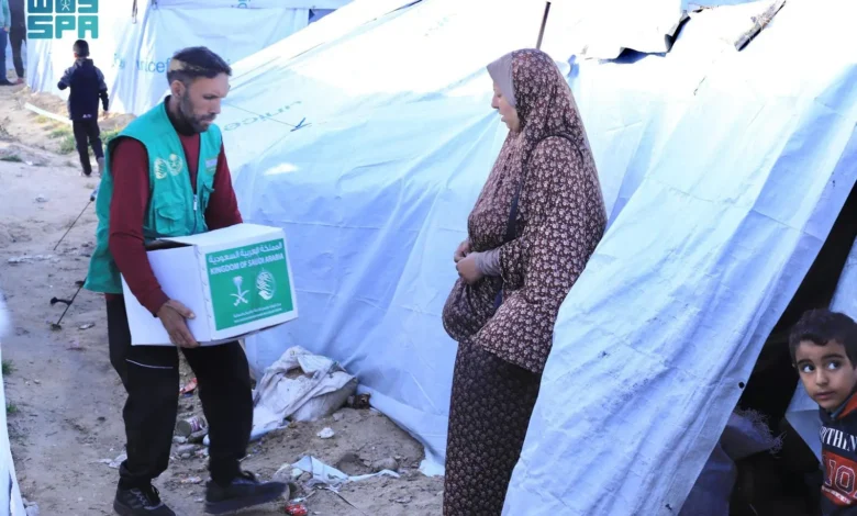 سلمان للإغاثة يوزع سلالًا غذائية في مخيمات النازحين بقطاع غزة