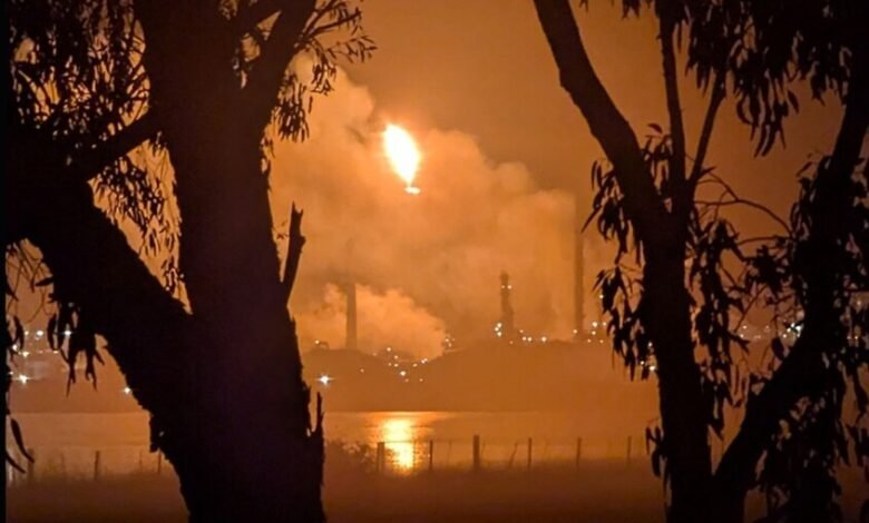 وقالت خدمات الإطفاء إن فرقها استجابت في نحو الساعة 23:15 مساء الأربعاء بالتوقيت المحلي لبلاغ عن حادث في وحدة البنزين الخاص بالسيارات داخل مصفاة تابعة لشركة “فيفا إنرجي” في مدينة جيلونج، على بعد نحو 70 كيلومترا جنوب غرب ملبورن، وذلك عقب ورود تقارير عن انفجارات وتصاعد ألسنة اللهب.