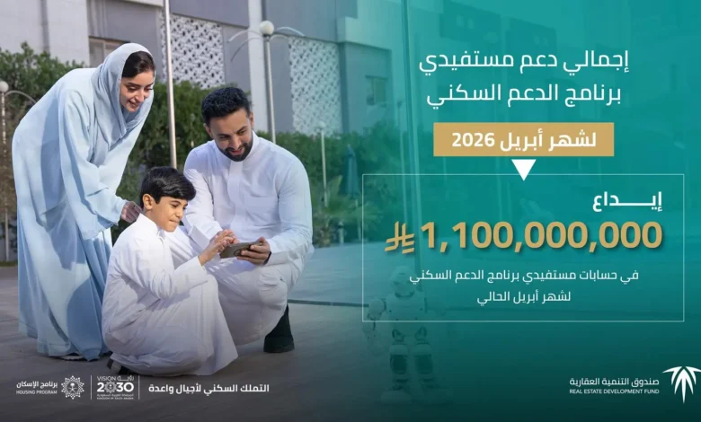 أعلن صندوق التنمية العقارية اليوم، إيداع مليار و100 مليون ريال في حسابات مستفيدي برنامج الدعم السكني من وزارة البلديات والإسكان والصندوق العقاري، وذلك عن شهر أبريل 2026 م.