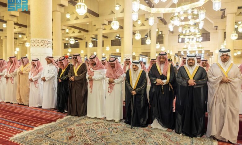 كما أدى الصلاة مع سموه عدد من أصحاب الفضيلة والمعالي والمسؤولين وجمع من المواطنين.