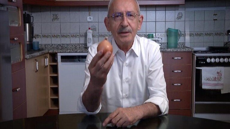 فيديو .. زعيم المعارضة التركية يخرج من مطبخ بيته حاملا بصلة ويخاطب أردوغان