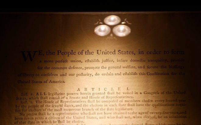 ويبدأ النص الدستوري بالجملة الشهيرة “نحن، شعب الولايات المتحدة، نقوم بغية تشكيل اتحاد أكثر كمالا… بالإعلان عن هذا الدستور للولايات المتحدة الأمريكية”.