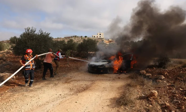 مستوطنون إسرائيليون يحرقون مركبات فلسطينيين شرق رام الله