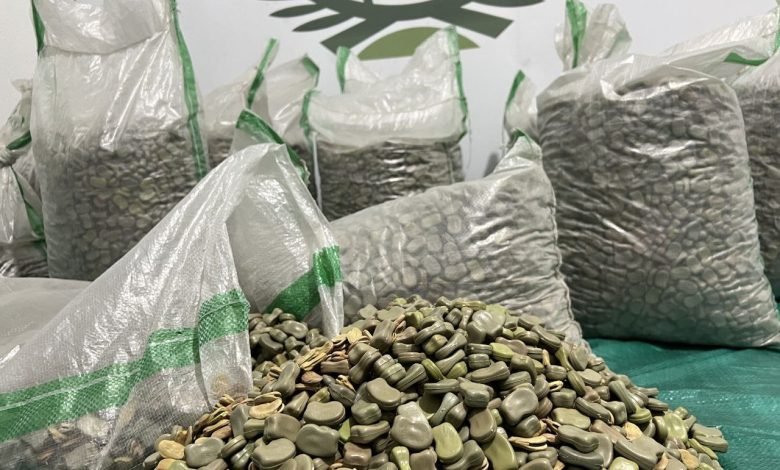 فيديو .. إحباط محاولة تهريب (403,000) قرص إمفيتامين مخدر مخبأة داخل شحنة فول في قوالب بلاستيكية