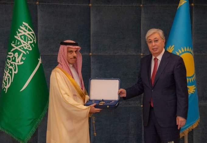 وتسلم الوسام نيابةً عن خادم الحرمين الشريفين، صاحب السمو الأمير فيصل بن فرحان بن عبد الله وزير الخارجية، خلال لقائه فخامة رئيس كازاخستان في مقر إقامته.