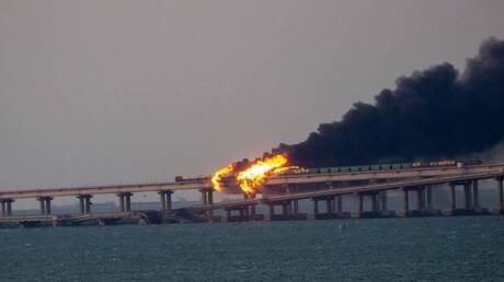 فيديو .. حريق على جسر القرم إثر انفجار سيارة مفخخة
