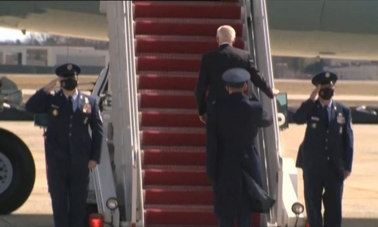 وبعد ذلك أقلعت طائرة “اير فورس وان” من قاعدة أندروز العسكرية في ضاحية واشنطن.