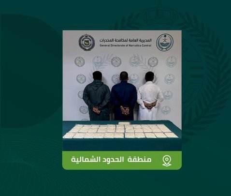 القبض على 3 أشخاص بمنطقة الحدود الشمالية لترويجهم 43 ألف قرص من الإمفيتامين المخدر