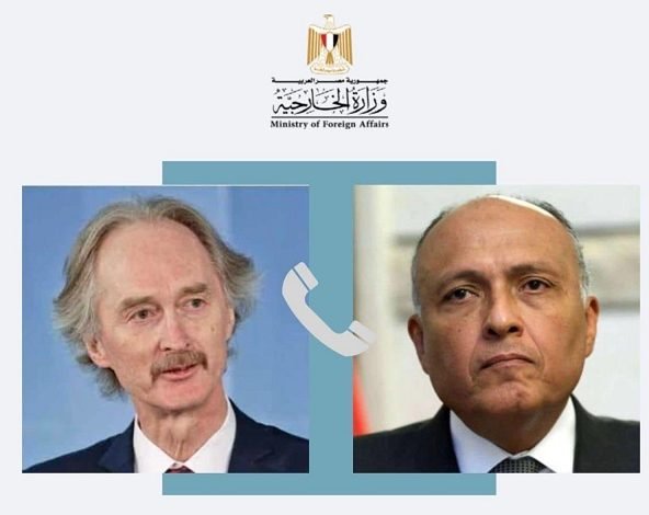 وذكرت الخارجية المصرية، في بيان، أن شكري وبيدرسون بحثا هاتفياً «ضرورة اتخاذ خطوات فاعلة نحو حلحلة الأزمة (السورية) وفقاً لمقاربة خطوة مقابل خطوة وبما يتوافق مع قرار مجلس الأمن رقم 2254».