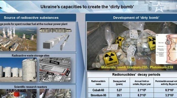 وأوضحت حكومة سلوفينيا العضو في الاتحاد الأوروبي وحلف شمال الأطلسي، أن “إحدى الصور المستخدمة في التغريدة الروسية للإشارة إلى قدرات أوكرانيا لتطوير قنبلة قذرة، تعود إلى عام 2010 وتم استخدامها في مؤتمرات ومنشورات”.