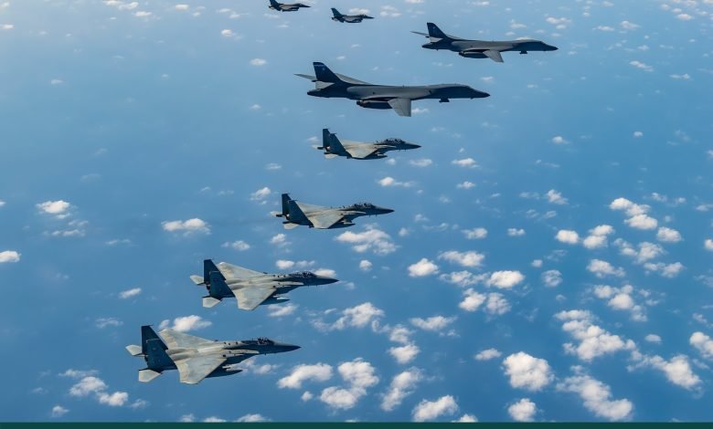 المقاتلات السعودية والأمريكية ترافق قاذفتين أمريكية إستراتيجية من نوع (بي-1)