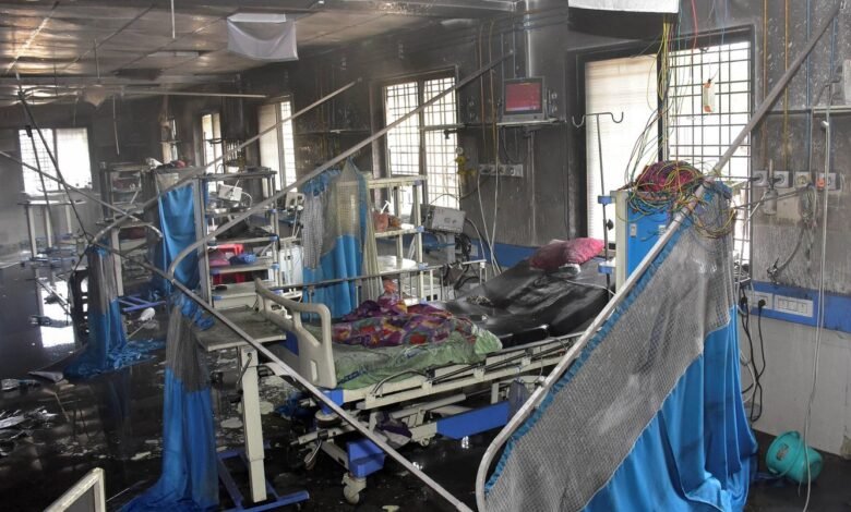 ويعتقد أن الحريق بدأ خارج الطابق الأول للمستشفى ثم امتد بطول الجدار الخارجي.