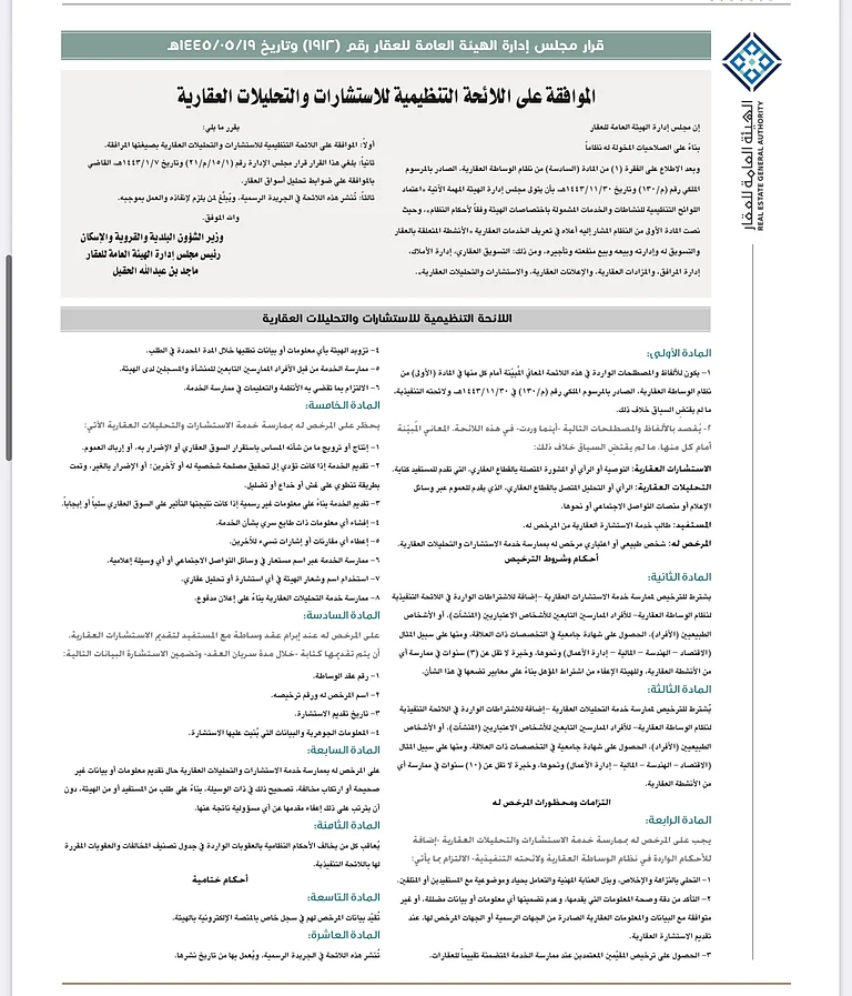 اشتراط الحصول على ترخيص لتقديم الاستشارات والتحليلات العقارية