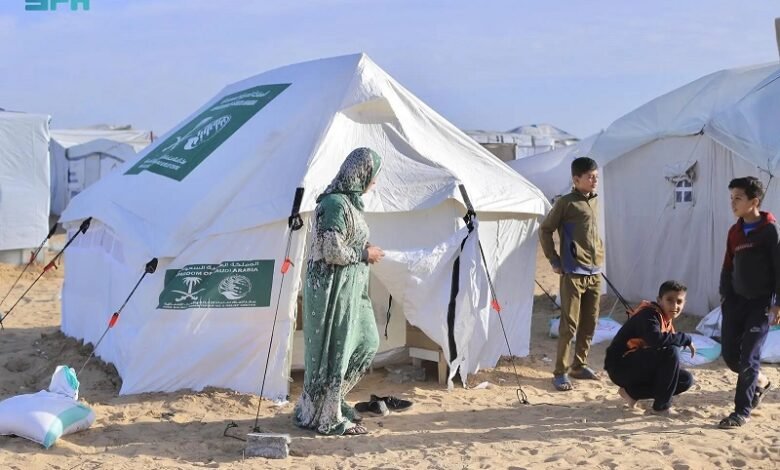 مركز الملك سلمان للإغاثة يوزع سلال غذائية ومساعدات إيوائية في مخيمات الإيواء غرب مدينة رفح جنوب قطاع غزة