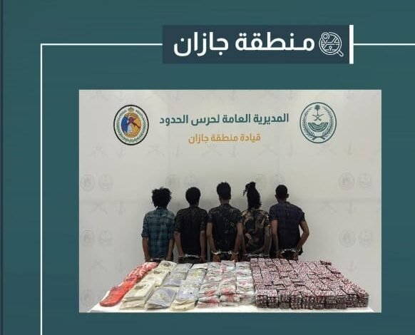 القبض على 5 مخالفين لنظام أمن الحدود لتهريبهم مواد مخدرة بجازان
