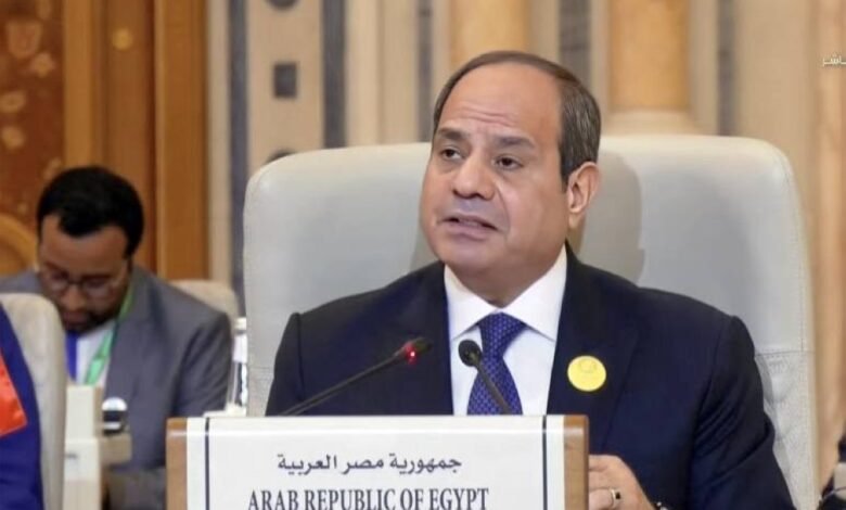 وقال الرئيس المصري، خلال كلمته في القمة العربية الـ33 في المنامة اليوم، إن مصر تنخرط في مفاوضات جادة لحل الأزمة في غزة، لكنها لا تجد أي تحرك من المجتمع الدولي لتحمل مسؤولياته، والعمل على حل القضية بإعلان حل الدولتين، مبيناً أن الحرب الإسرائيلية على غزة تفرض مسارين: إما السلام والأمل، أو الفوضى والدمار الذي يدفع إليه الاحتلال الإسرائيلي.